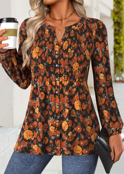 Bluzka Tunikowa Terrakota z Kwiatowym Wzorem – Elegancka i Wygodna