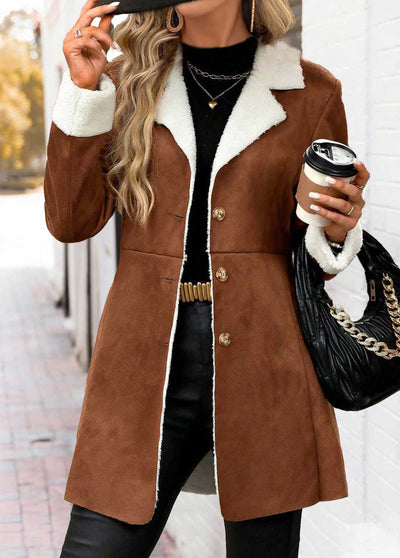 Kontrastowy płaszcz w kolorze ciemnej kawy – Codzienny komfort w stylu casual