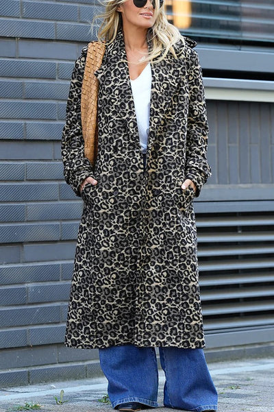 Kardigan w brązowy leoparda dla kobiet - Miękki materiał i stylowy wygląd na jesień