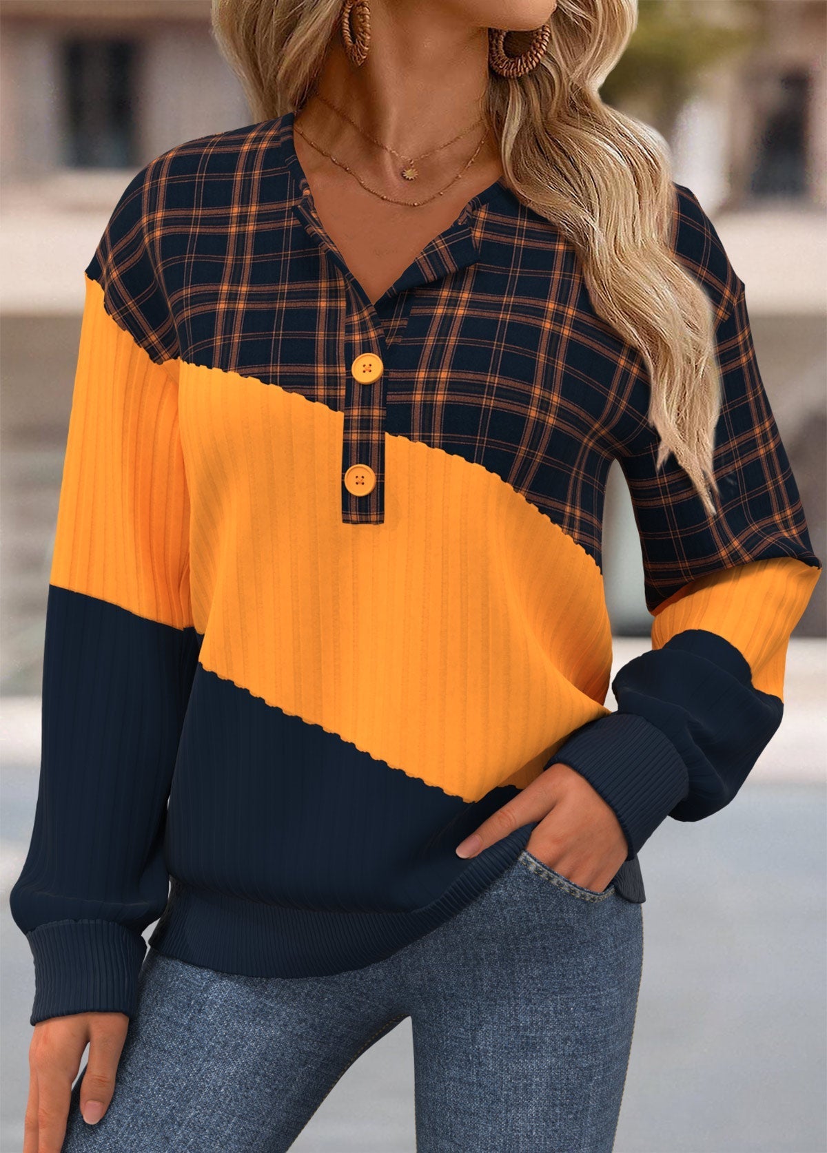 Długi rękaw z dekoltem w serek w zieloną kratę