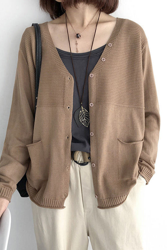 Prążkowane wstawki i boczne kieszenie dodają funkcjonalności i charakteru. Dekolt w serek podkreśla szyję i nadaje lekkości sylwetce. Sweter łączy elegancję z wygodą i praktycznym designem.